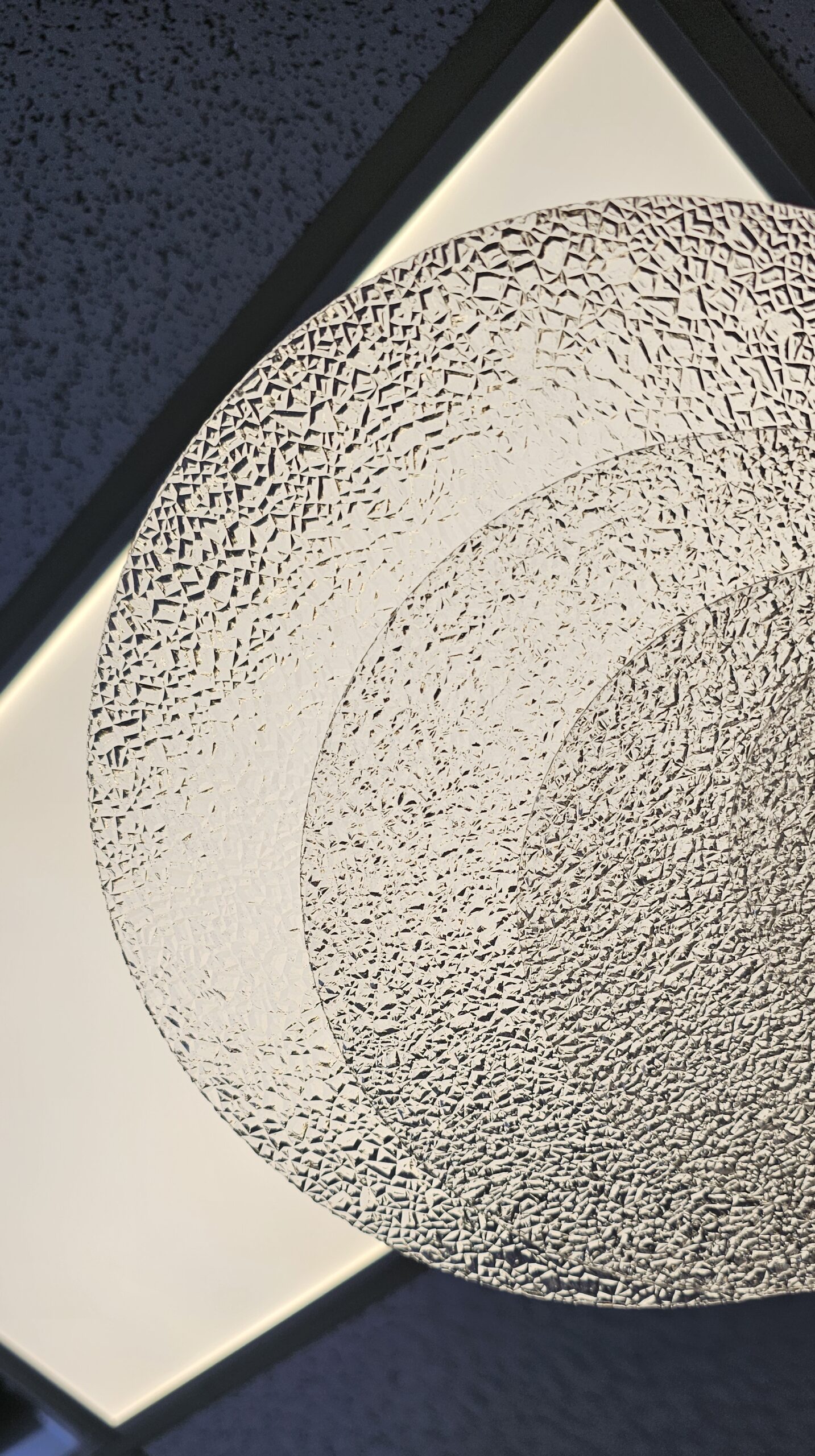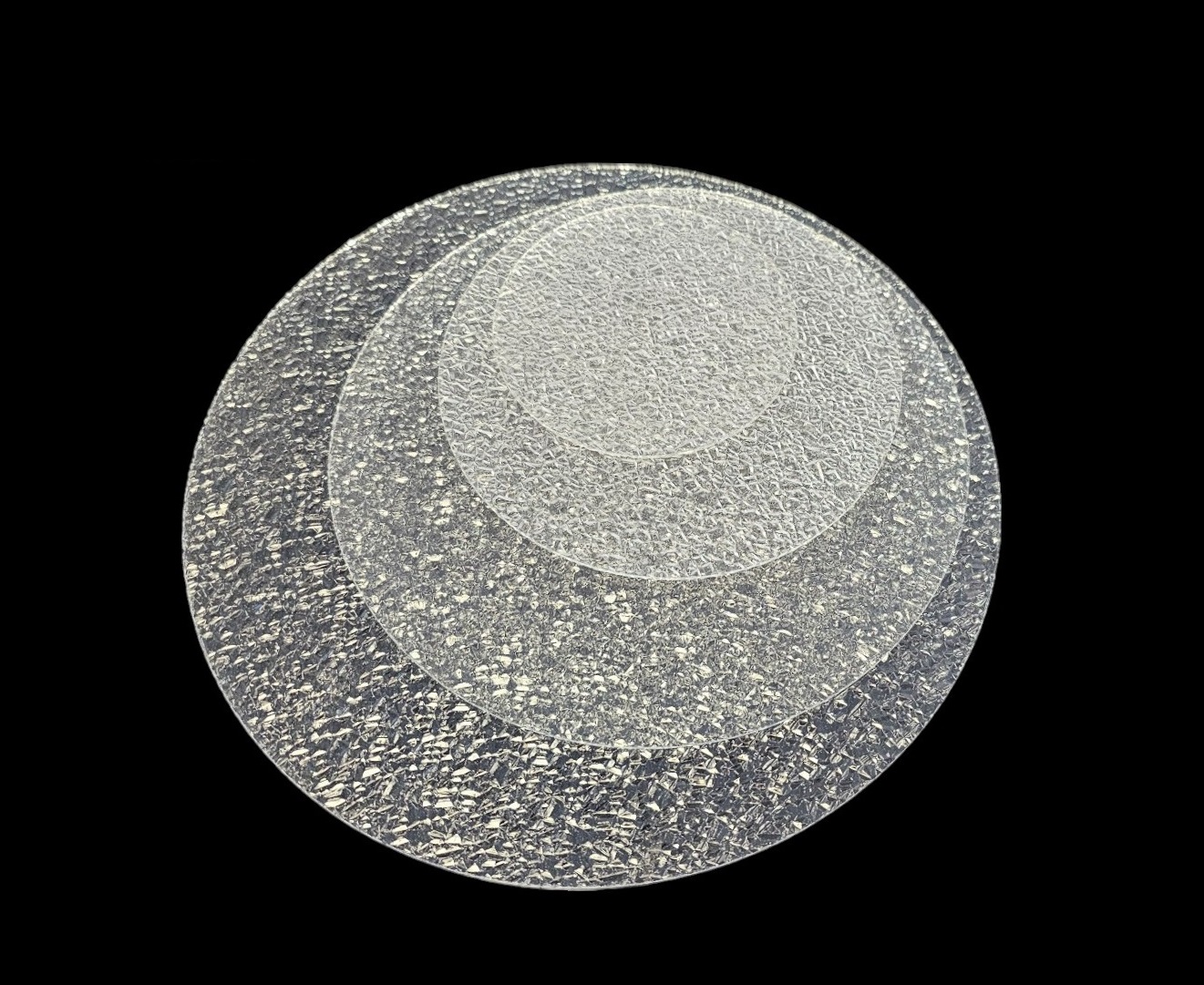 - Cracked Inc round disc diffuser suitable for a variety of applications, including desk and floor lamps, ceiling light shades, flush mount kitchen lighting, and drum-style lamps.