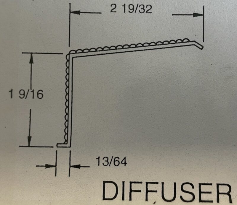 Diffuser slides forward for easy installation and maintenance. LightCover commonly used under cabinet lights, Hospital bed lights, maintenance section tables, and bathrooms. Provides an ambience without increasing brightness. Material is ribbed white acrylic.