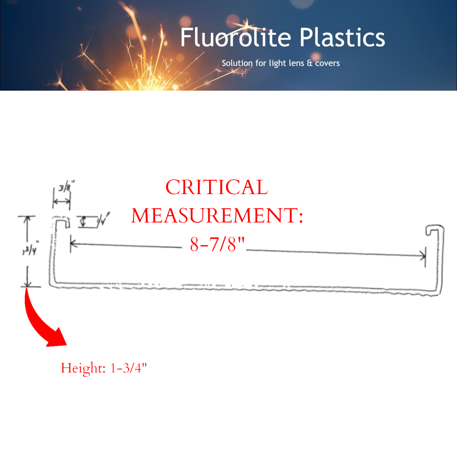 F-2717: Wrap Around Replacement Light Cover | 47-7/8″ x 9-13/16″ (between the hooks = 8-7/8″) x 1-3/4″ Height