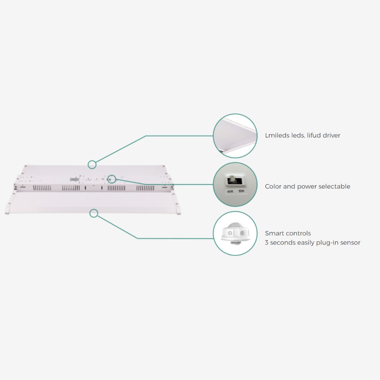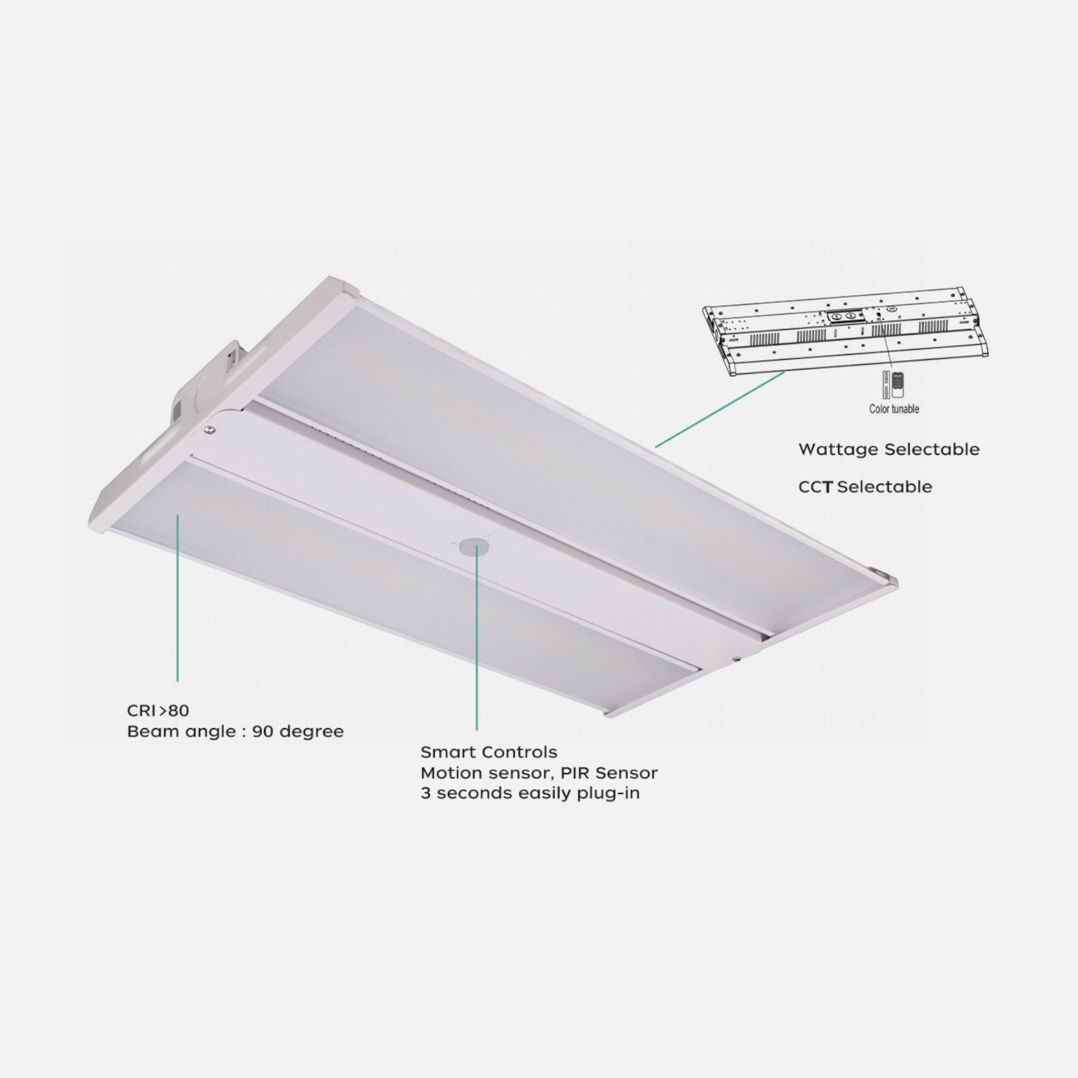 - Wattage Selectable: set output to 130W / 150W / 165W to match ceiling height and foot-candle targets.