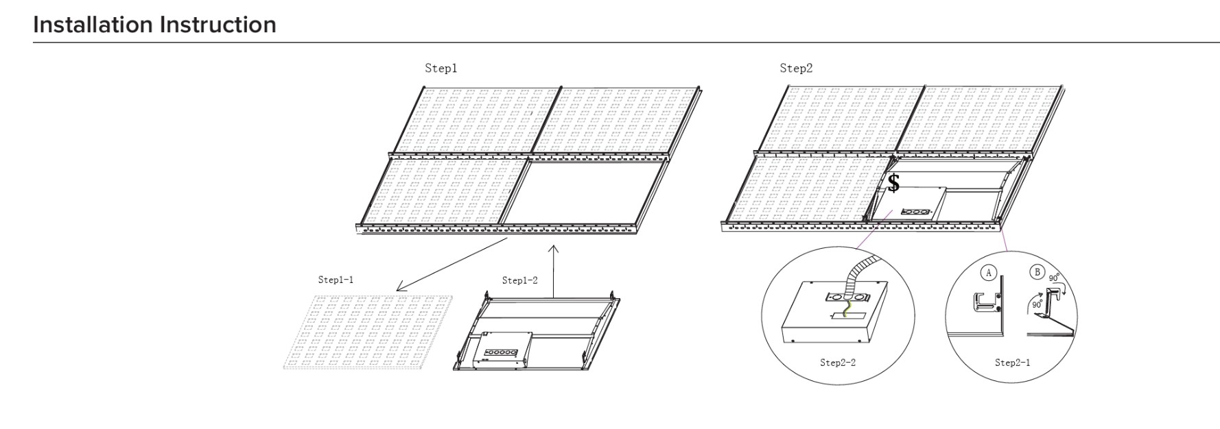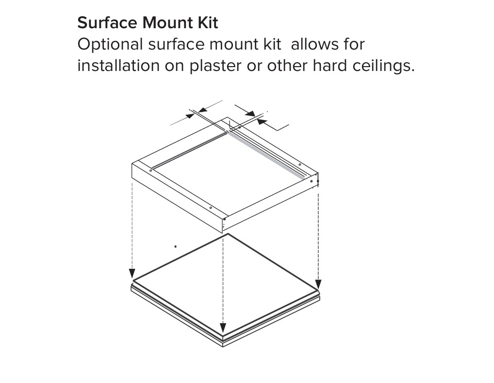 - Standard recessed mounting in most 2’ x 2’ or 2’ x 4’ grid ceilings