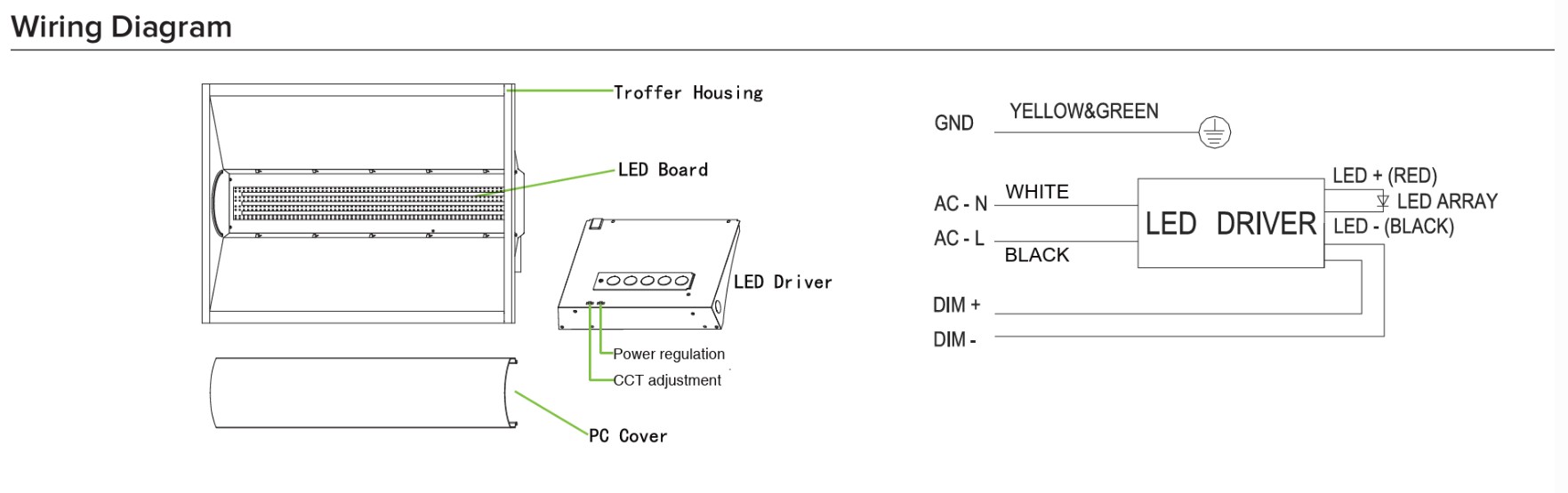 - Easily set wattage and CCT during installation using the adjustment switches located on the driver box