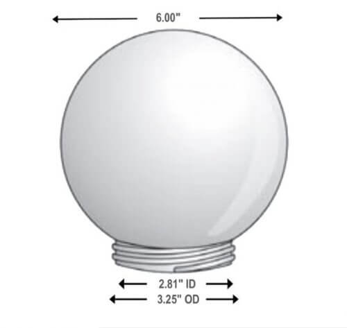 6″ Diameter White Acrylic Lamp Post Globe Threaded| Smooth Textured with 3.25″ Threaded Neck