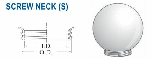 - 6″ Diameter, with 3.25″ Outer Diameter Opening (Threaded Neck sphere globe)