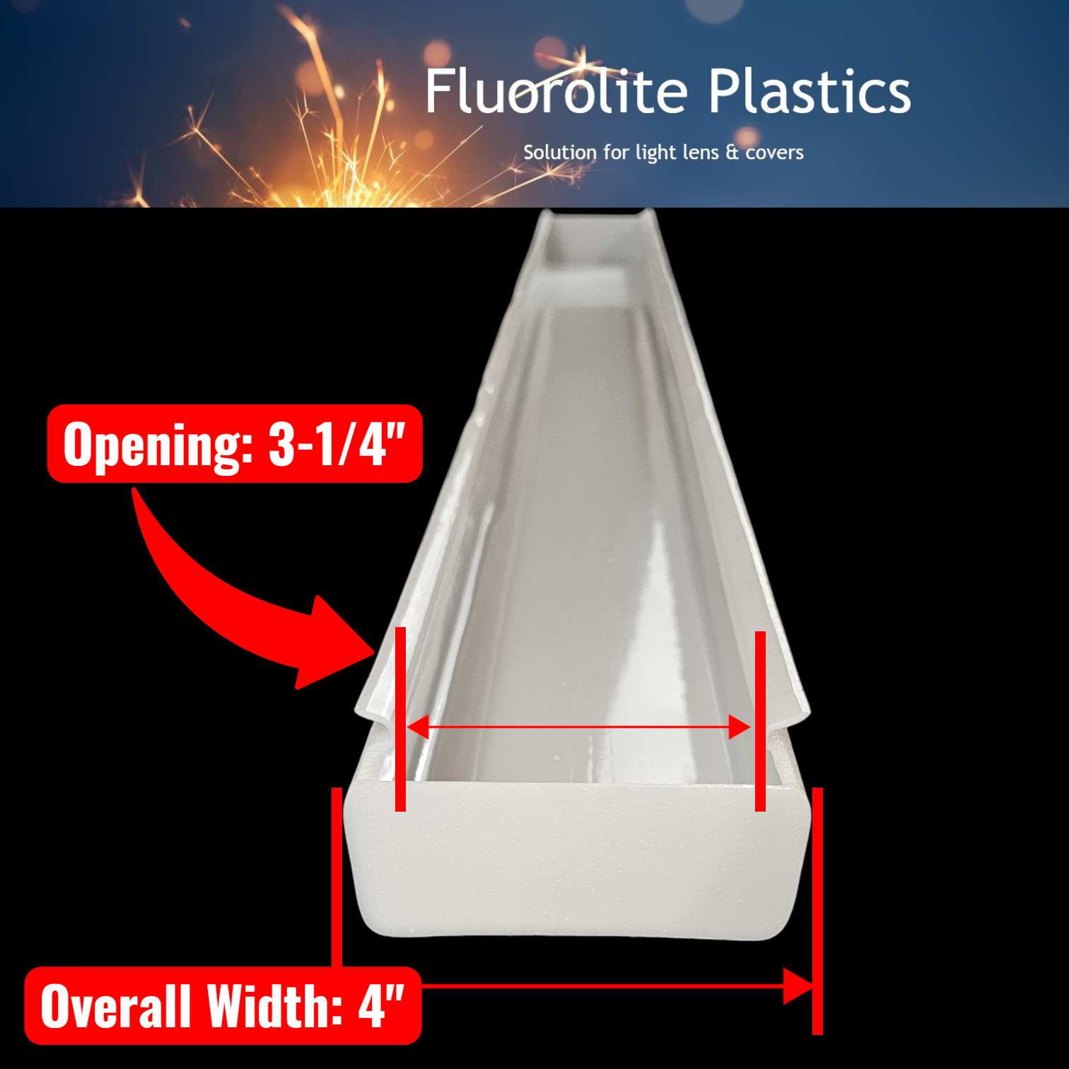 F-6013: White Acrylic Puff Diffuser | OD: 4″ (W) x 49-1/2″ (L) x 2-3/16″ Height | Inside Opening: 3-1/4″ x 48-1/2″